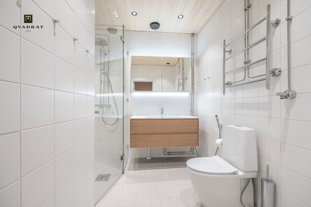 Pohjaratkaisu on selkeä ja toimiva. Neljä huonetta ja erillinen, reilunkokoinen keittiö tarjoavat hyvät puitteet sekä arkeen että yhdessäoloon – keittiöön mahtuu hyvin 6–8 hengen ruokailuryhmä. Huoneistoa rytmittää kaunis kalaruotoparketti ja hillitty, harkittu värimaailma.