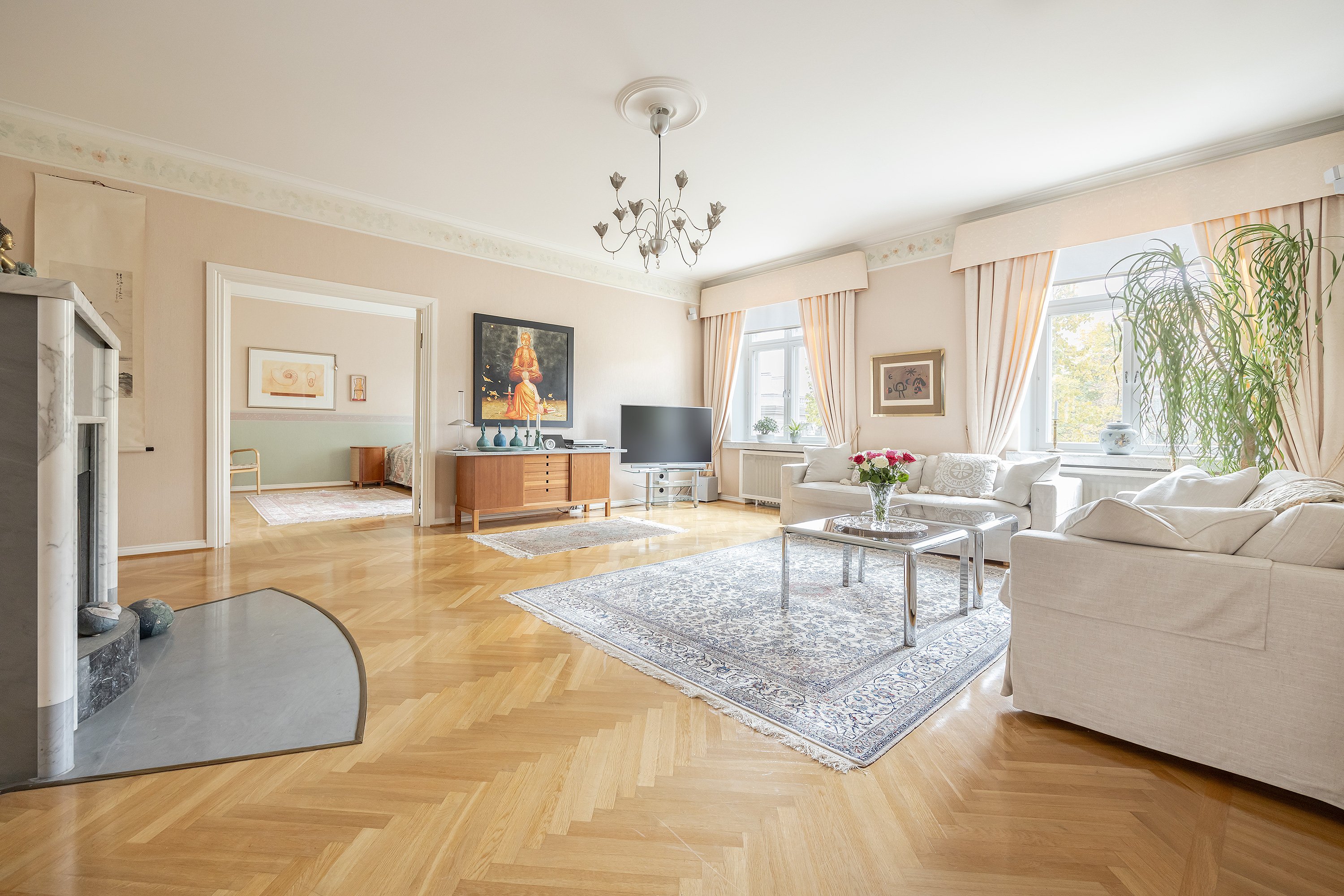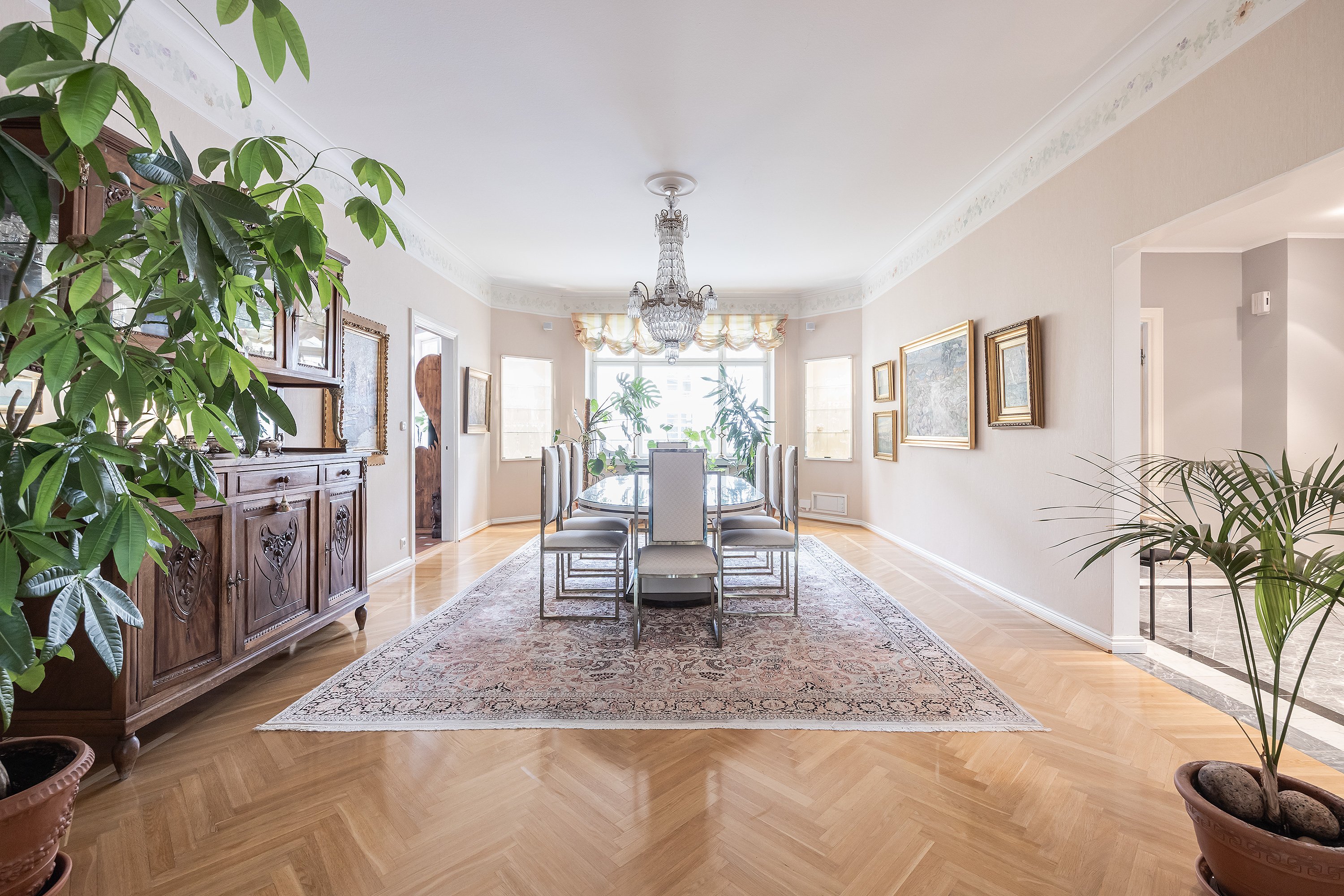 Tässä edustavassa ja 257 neliömetrin huoneistossa yhdistyvät historiallisen arvokiinteistön (rak. 1928) viehätys ja modernin asumisen vaatimukset. Asunto sijaitsee talon neljännessä kerroksessa.
