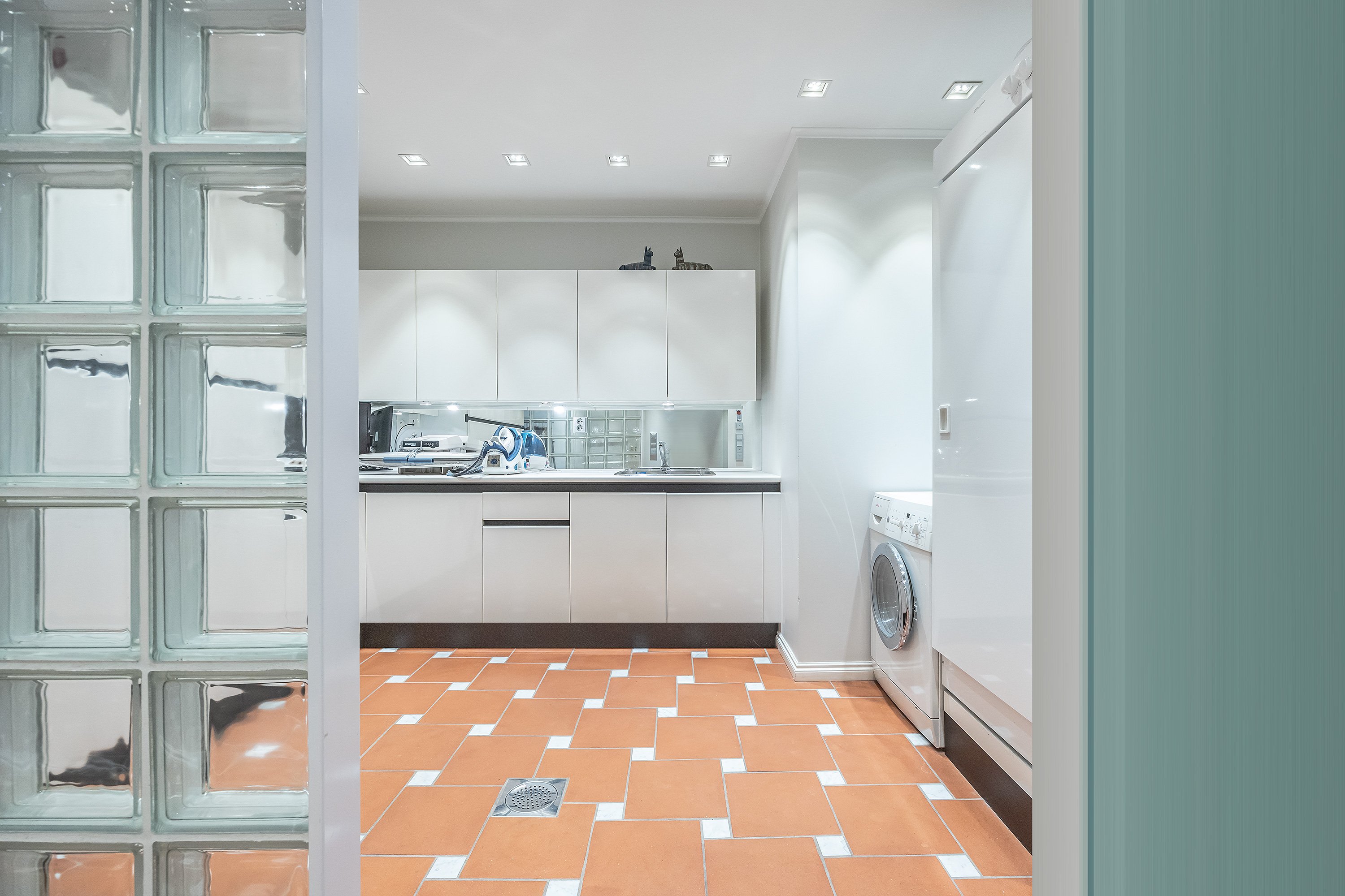 Arjen sujuvuutta palvelee myös erittäin tilava ja käytännöllinen kodinhoitohuone.