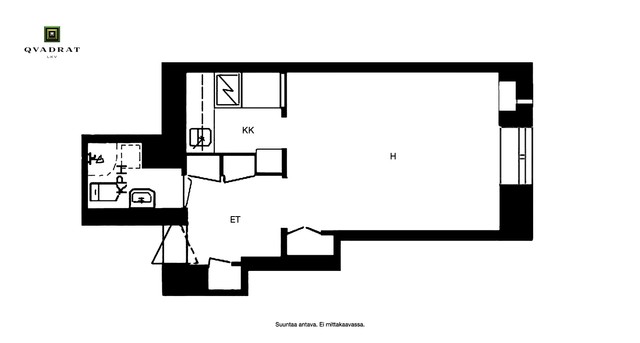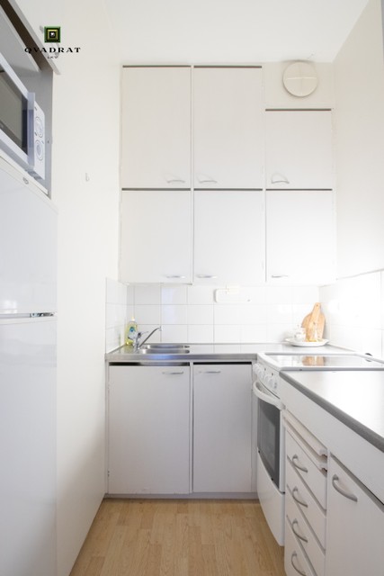 Viihtyisä hissillisen rapun yksiö. Ikkuna etelään Jääkärinkadulle. Tilava eteinen, jossa runsaasti säilytystilaa ja käynti kylpyhuoneeseen. Kylpyhuoneessa valmiina pesukone. Keittokomero, jenkkikaappi ja keraaminen liesi & uuni - keittiössä runsaasti kaappitilaa. Tilava ja korkea huone.