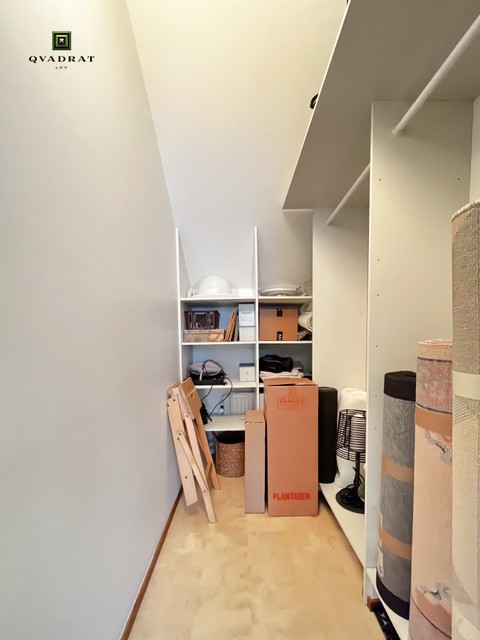 Alakerrassa olohuone, johon saa mahtumaan isonkin sohvaryhmän. Tilavassa keittiössä uuni, liesi, astianpesukone, jää-pakastinkaappi ja reilusti kaappitilaa. Keittiöön mahtuu myös hyvin ruokailuryhmä. Keittiön yhteydessä kodinhoitohuone. Keittiöstä pääsee ulos parvekkeelle ja yläkertaan. Yläkerrassa on isokokoinen makuuhuone, vaatehuone ja kylpyhuone. Kylpyhuoneessa on wc, suihku ja sauna. Alakerrassa on erillinen WC.