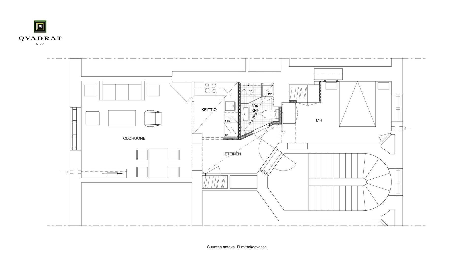 Upea kolmannen kerroksen läpitalon kaksio huippusijainnilla Ullanlinnassa!